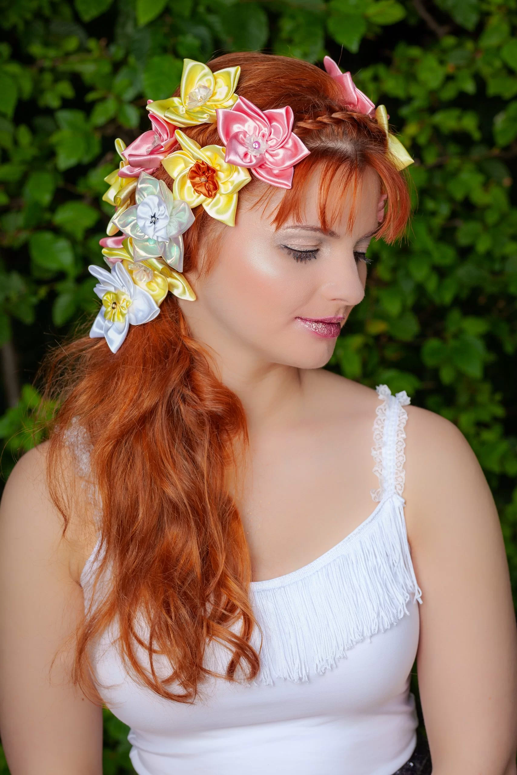 Nos narcisses seront du plus bel effet sur de nombreuses coiffures. Par exemple : queues de cheval, chignons, catogans, tresses, couronnes, et aussi sur cheveux lâchés ! Pour un rendu plus spectaculaire, n’hésitez pas à en semer plusieurs dans vos cheveux, comme sur notre photo !