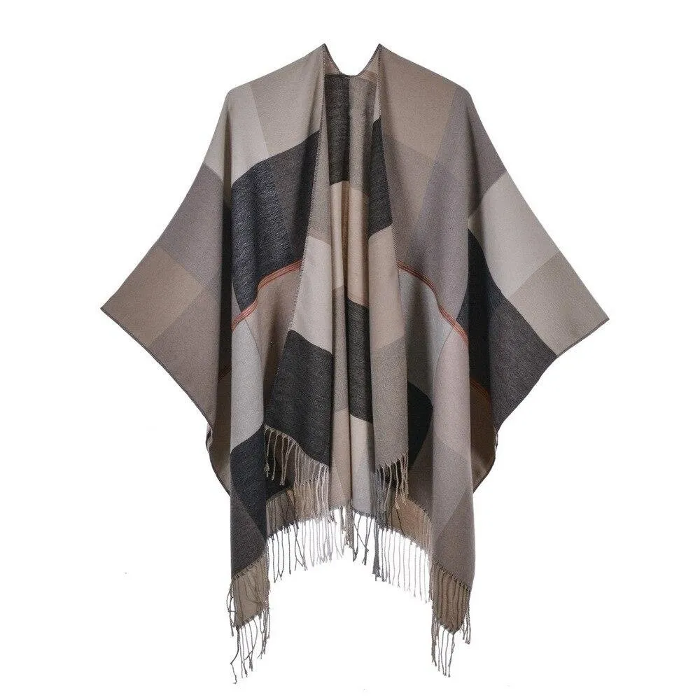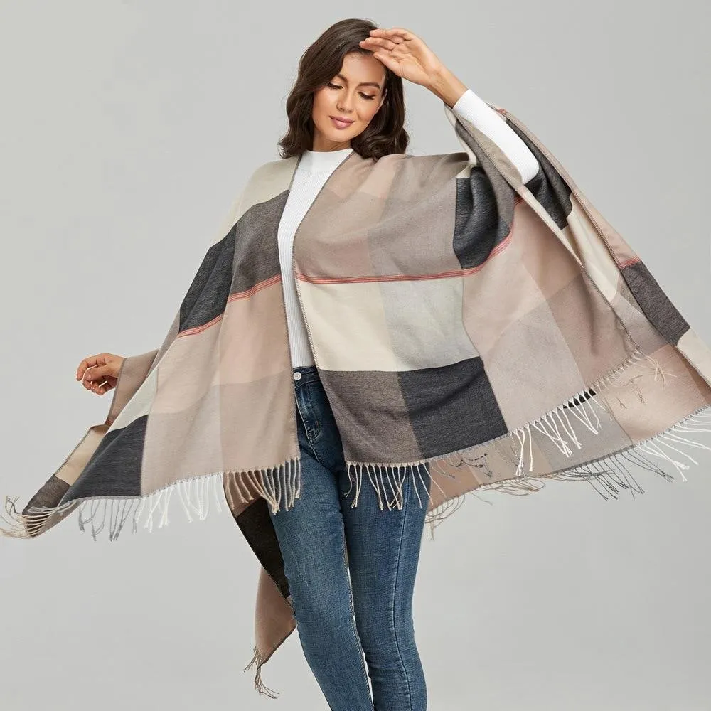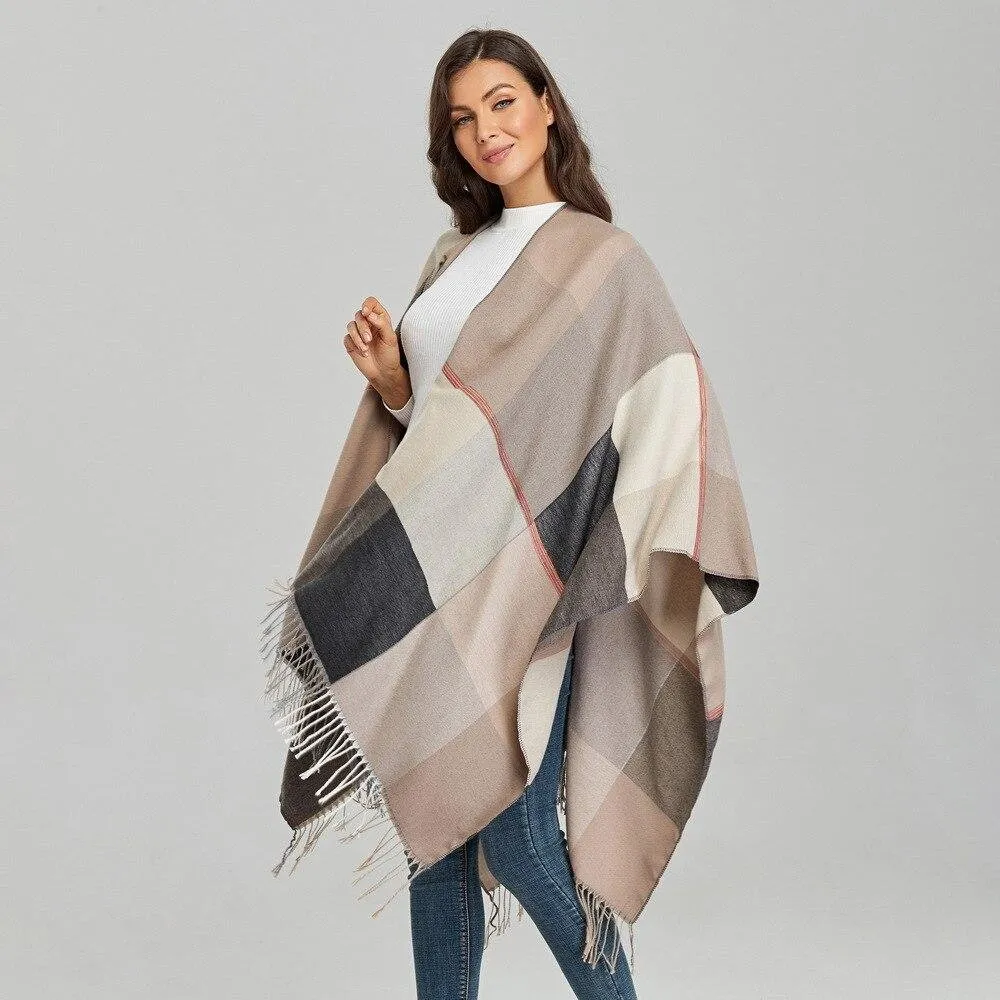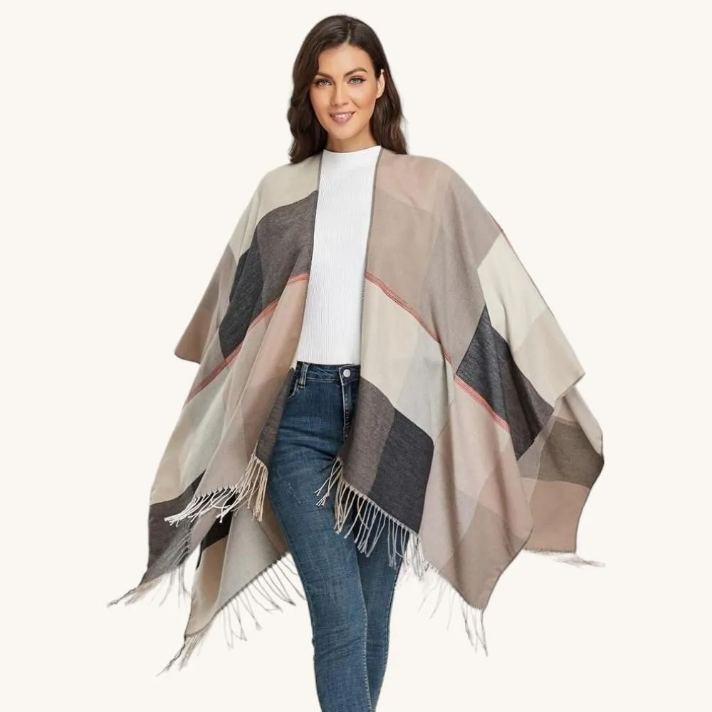 Élégance et Confort : Cape Femme à Carreaux Beige