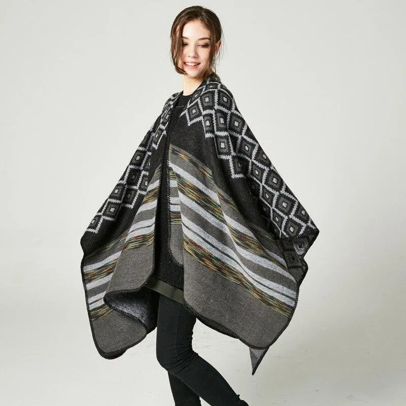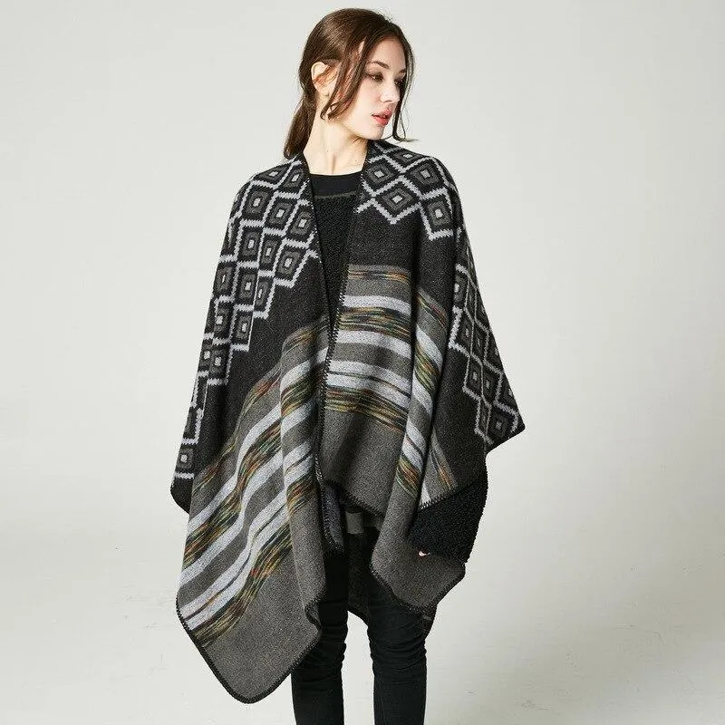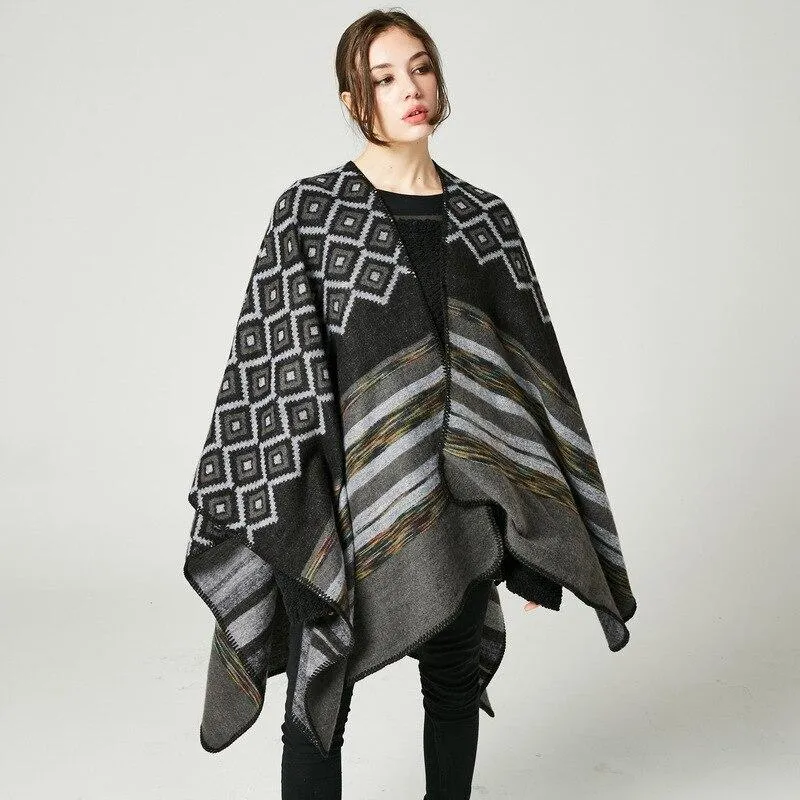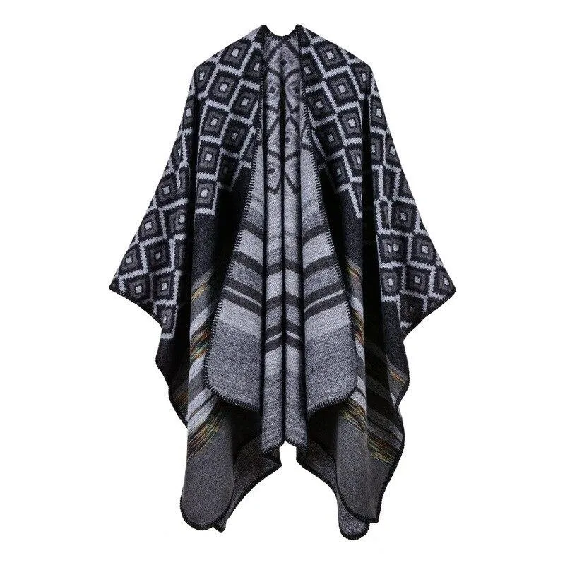 Ce poncho peut aussi remplacer votre veste de saison : un vêtement pratique à avoir dans sa garde-robe d’hiver ! Voir également le poncho d’hiver en cachemire pour vos soirées fraiches.