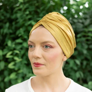 Turban femme made in France en lycra doré irisé Joyau des sables