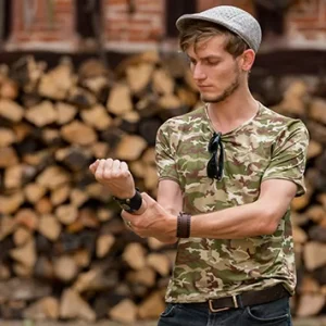 Tee-shirt Made in France pour homme en polyamide kaki imprimé treillis militaire Alexandre