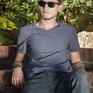 Tee-shirt Made in France pour homme en polyamide bleu jean chiné Alexandre