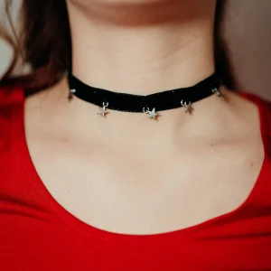 Choker Made in France noir en velours noir pailleté avec breloques étoiles Rockstar