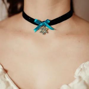 Choker Made in France noir en velours noir pailleté avec breloque flocon Reine des Neiges