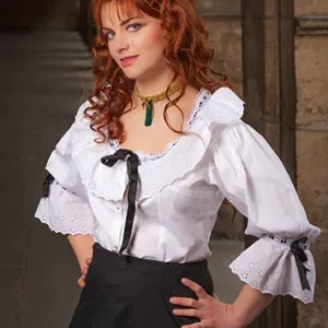 Chemisier Made in France pour femme en coton blanc et broderie anglaise Alsace