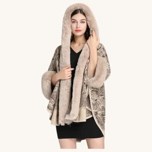 Poncho avec Capuche Fourrure Beige