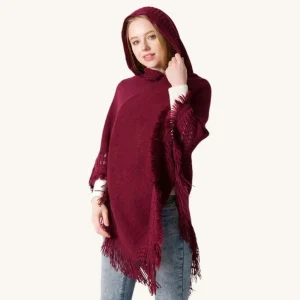 Poncho Capuche à Franges Bordeaux